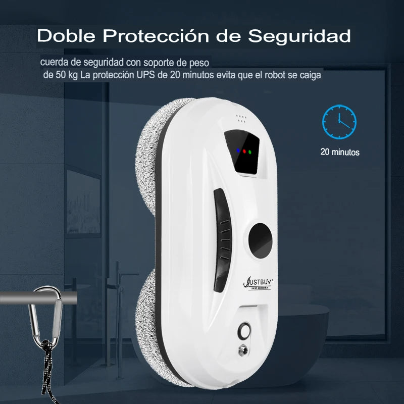 Su potente motor asegura una limpieza eficaz mientras se adhiere firmemente a superficies verticales, sin riesgos de caídas.