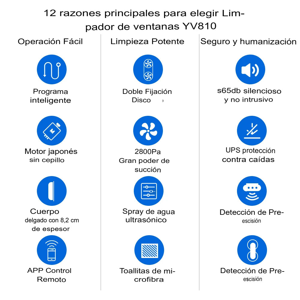 • Modos de limpieza: 3 rutas automáticas (vertical, horizontal, mixto)